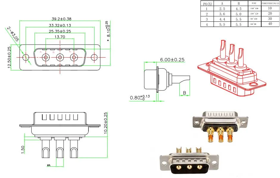 3W3 full layout high power D-sub connector